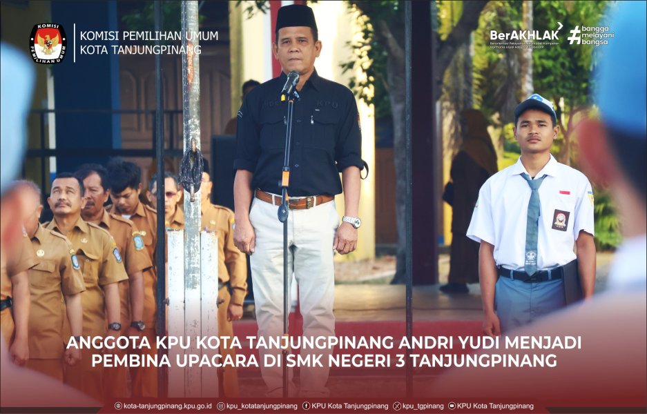 Anggota KPU Kota Tanjungpinang, Andri Yudi menjadi Pembina Upacara di SMK Negeri 3 Tanjungpinang, bertempat di Halaman Upacara SMK Negeri 3 Tanjungpinang. Senin, (2/2/2026). Upacara Bendera Jadi Sarana KPU Kota Tanjungpinang Edukasi Pemilih Pemula, dalam hal ini Ketua Teknis Penyelenggaraan, Andri Yudi, menjadi Pembina Upacara di SMK Negeri 3 Tanjungpinang. Dalam amanatnya beliau menyampaikan bahwa KPU adalah lembaga yang bertugas menyelenggarakan pemilihan umum di Indonesia mulai dari pemilihan presiden, DPR, hingga kepala daerah. Tugas ini sangat penting karena melalui pemilu, rakyat menentukan arah masa depan bangsa. Adik-adik sekalian, dalam waktu dekat pasti ada yang akan akan memasuki usia pemilih pemula yaitu 17 tahun. Artinya, adik-adik akan mendapatkan hak sekaligus tanggung jawab untuk ikut menentukan arah masa depan bangsa melalui pemilu. Sebagai pelajar SMK, adik-adik adalah generasi muda yang akan segera memasuki dunia kerja dan dunia masyarakat. Dalam waktu yang tidak lama lagi, sebagian dari adik-adik akan memiliki hak pilih dalam pemilu. Oleh karena itu, penting bagi adik-adik untuk memahami bahwa satu suara sangat berarti. Sebagai pemilih pemula yang akan atau sudah berusia 17 tahun, ada satu hal penting yang tidak boleh adik-adik abaikan, yaitu pemutakhiran data pemilih. Hak pilih tidak akan bisa digunakan jika data adik-adik belum tercatat dengan benar. Menjadi pemilih pemula bukan hanya tentang menggunakan hak pilih pada hari pemungutan suara, tetapi juga tentang bertanggung jawab sejak awal, memastikan diri kita tercatat dan diakui dalam sistem demokrasi. Di era digital seperti sekarang, informasi sangat mudah diakses. Namun, kita juga harus berhati-hati terhadap hoaks, ujaran kebencian, dan informasi yang menyesatkan, terutama menjelang pemilu. Sebagai generasi muda yang cerdas dan terampil terutama siswa SMK yang terbiasa berpikir logis dan teknis adik-adik sekalian harus mampu menyaring informasi dengan baik. Selain itu, saya ingin menekankan pentingnya disiplin dan integritas. Nilai-nilai ini bukan hanya penting dalam dunia kerja teknik atau industri, tetapi juga dalam kehidupan berdemokrasi. Pemilu yang jujur dan adil hanya bisa terwujud jika semua pihak menjunjung tinggi kejujuran dan tanggung jawab. Terakhir, saya berharap adik-adik semua bisa menjadi pemilih yang cerdas, pemuda yang aktif, dan warga negara yang peduli. Jangan apatis, jangan merasa suara adik-adik tidak berarti. Justru masa depan bangsa ini ada di tangan generasi muda seperti adik-adik sekalian. Turut hadir Kasubbag Hukum dan SDM, Efiana Darnawati Tinambunan, dan Staff Parmas dan SDM KPU Kota Tanjungpinang. (Humas KPU Kota Tanjungpinang) ....