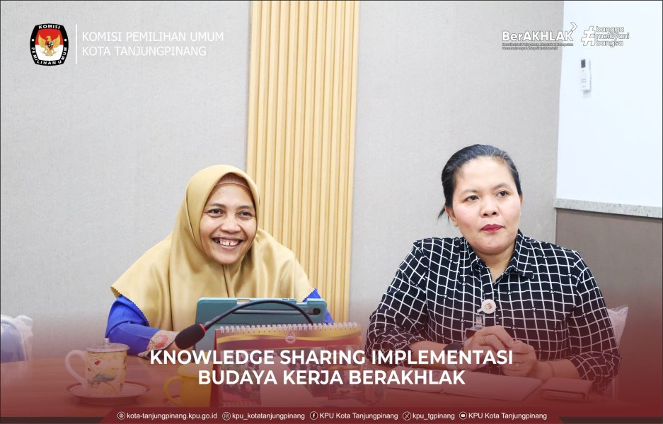 KPU Kota Tanjungpinang mengikuti kegiatan Knowledge Sharing yang diselenggarakan oleh KPU RI secara daring melalui Zoom Meeting dengan tema Penguatan Implementasi Budaya kerja BerAKHLAK di Lingkungan Sekretariat Jenderal KPU, Sekretariat KPU Provinsi dan Sekretariat KPU Kabupaten/Kota, bertempat di Ruang Rapat KPU Kota Tanjungpinang. Kamis, (25/9/2025).