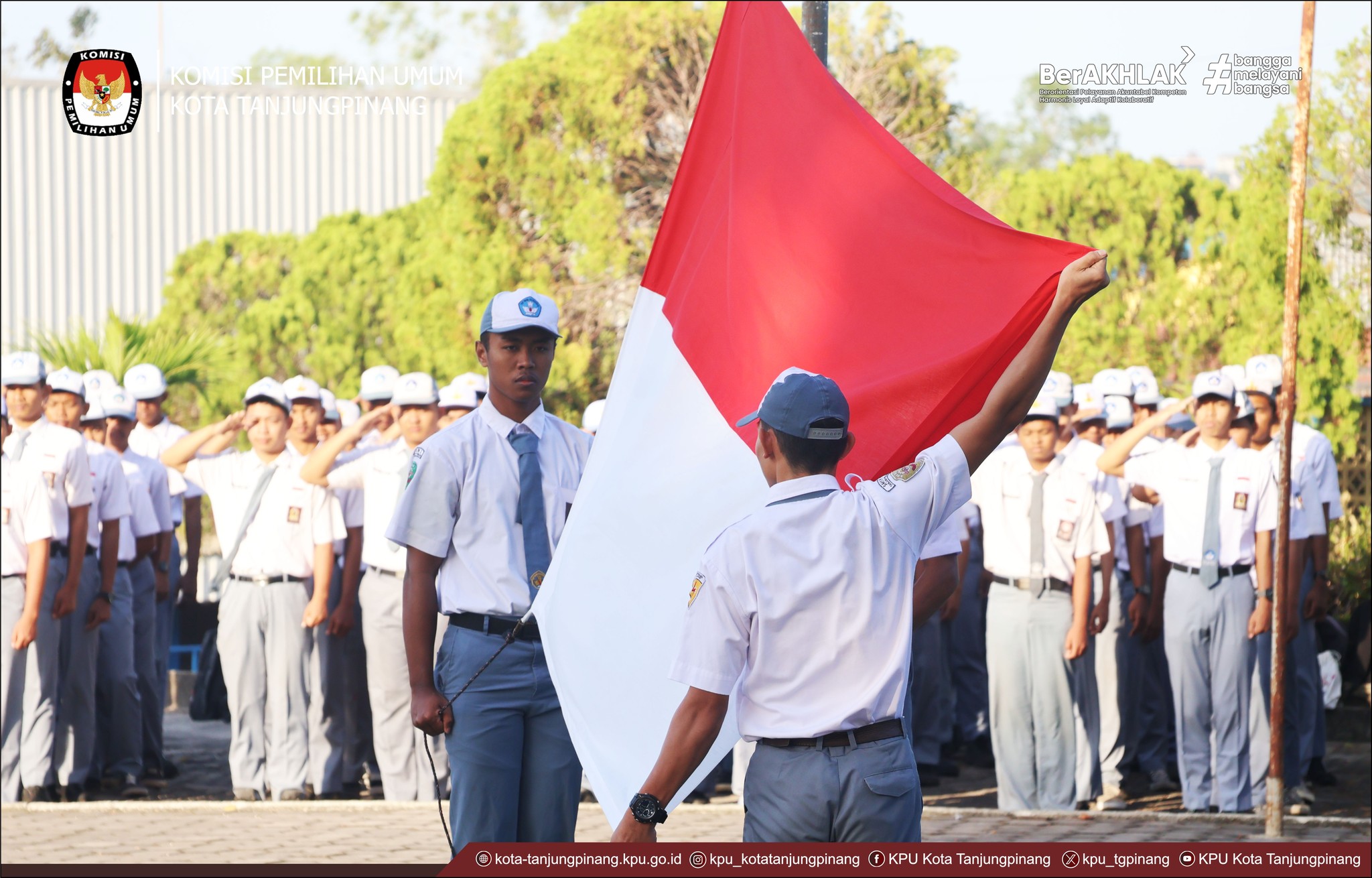 Upacara Bendera Jadi Sarana KPU Kota Tanjungpinang Edukasi Pemilih Pemula, dalam hal ini Ketua Teknis Penyelenggaraan, Andri Yudi, menjadi Pembina Upacara di SMK Negeri 3 Tanjungpinang. Dalam amanatnya beliau menyampaikan bahwa KPU adalah lembaga yang bertugas menyelenggarakan pemilihan umum di Indonesia mulai dari pemilihan presiden, DPR, hingga kepala daerah. Tugas ini sangat penting karena melalui pemilu, rakyat menentukan arah masa depan bangsa. Adik-adik sekalian, dalam waktu dekat pasti ada yang akan akan memasuki usia pemilih pemula yaitu 17 tahun. Artinya, adik-adik akan mendapatkan hak sekaligus tanggung jawab untuk ikut menentukan arah masa depan bangsa melalui pemilu.