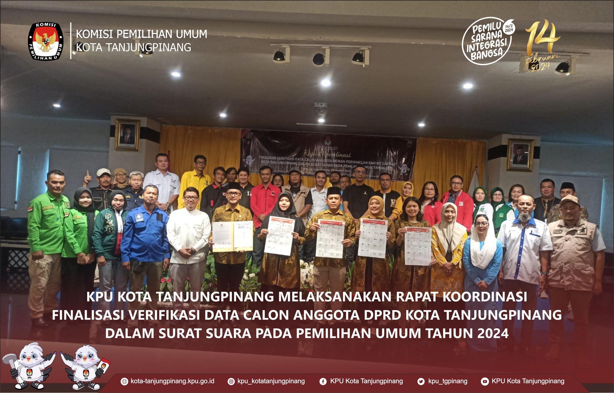 Seluruh partai politik melakukan verifikasi data calon dan menyetujui draft yang disampaikan oleh KPU Kota Tanjungpinang. Kegiatan yang berlangsung di Grand Ballroom Hotel CK Tanjungpinang tersebut berakhir pada jam 11.00 WIB.