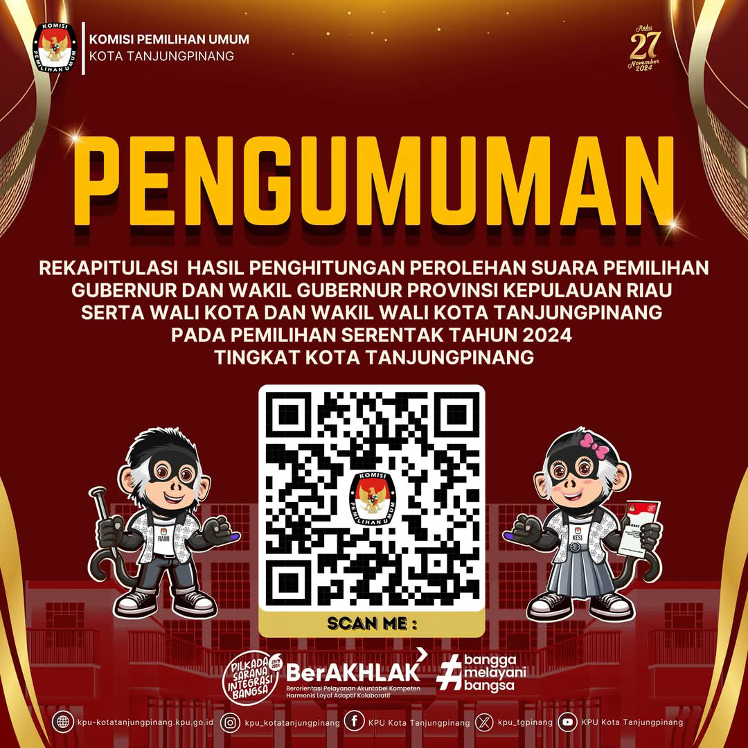PENGUMUMAN REKAPITULASI HASIL PENGHITUNGAN PEROLEHAN SUARA PEMILIHAN TAHUN 2024 TINGKAT KOTA TANJUNGPINANG