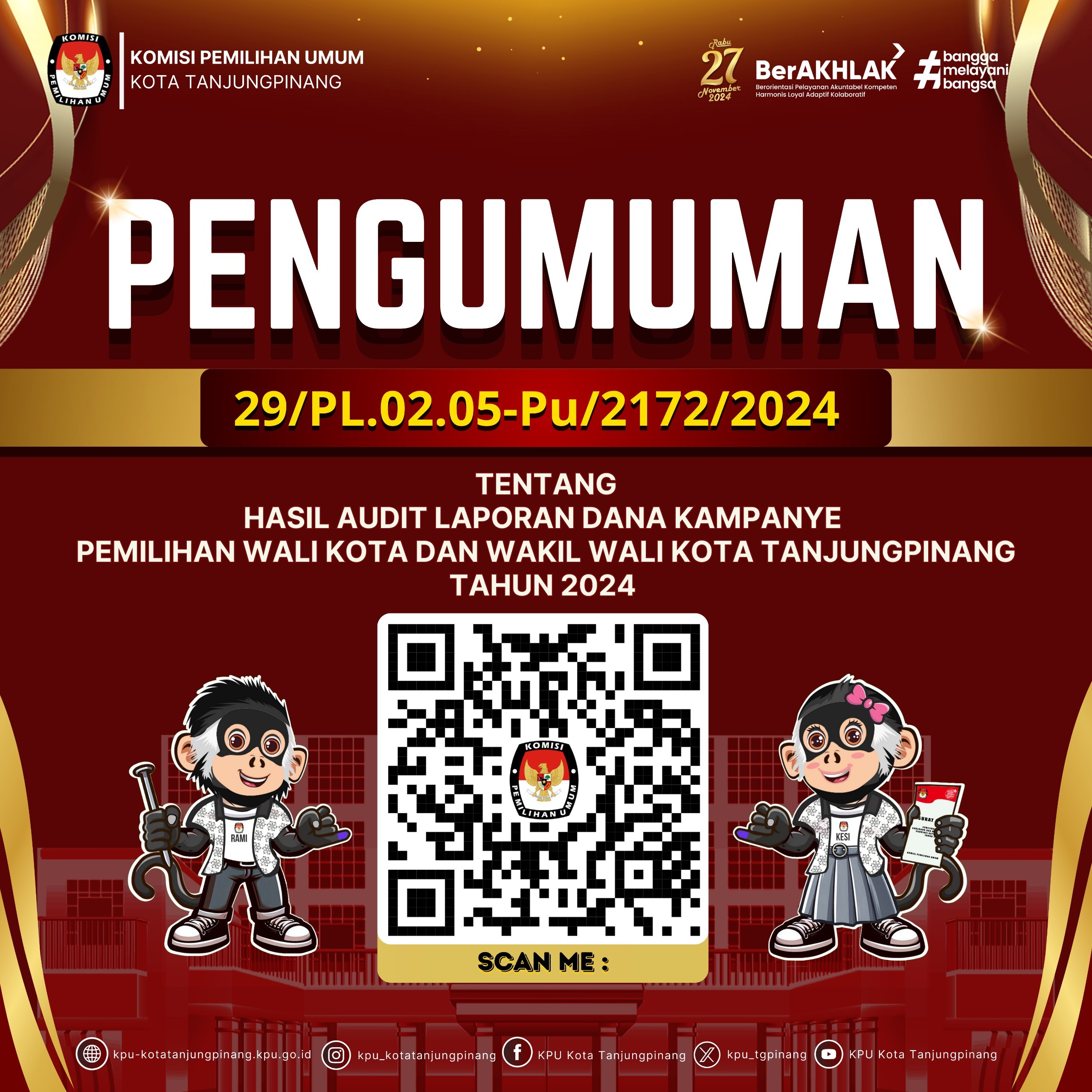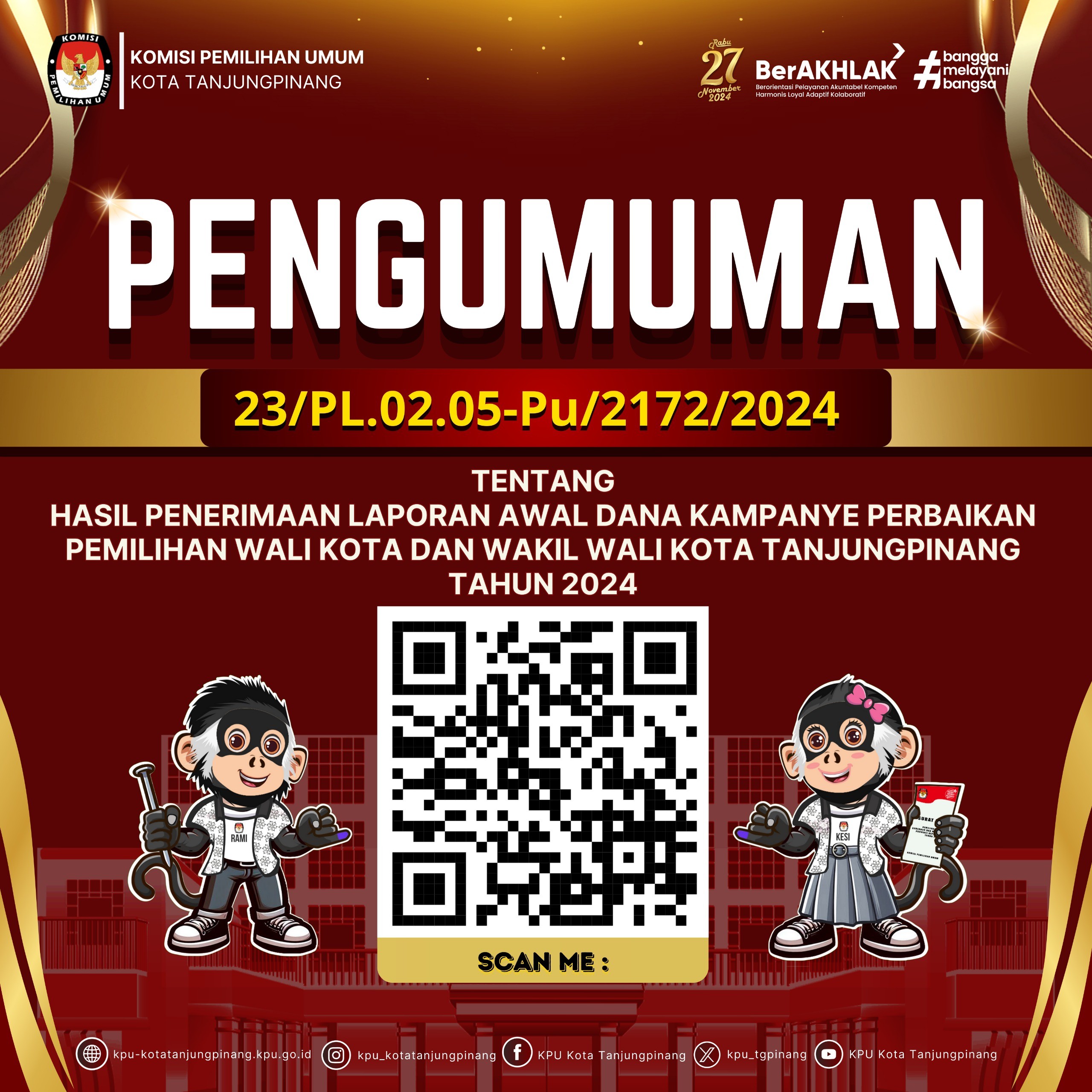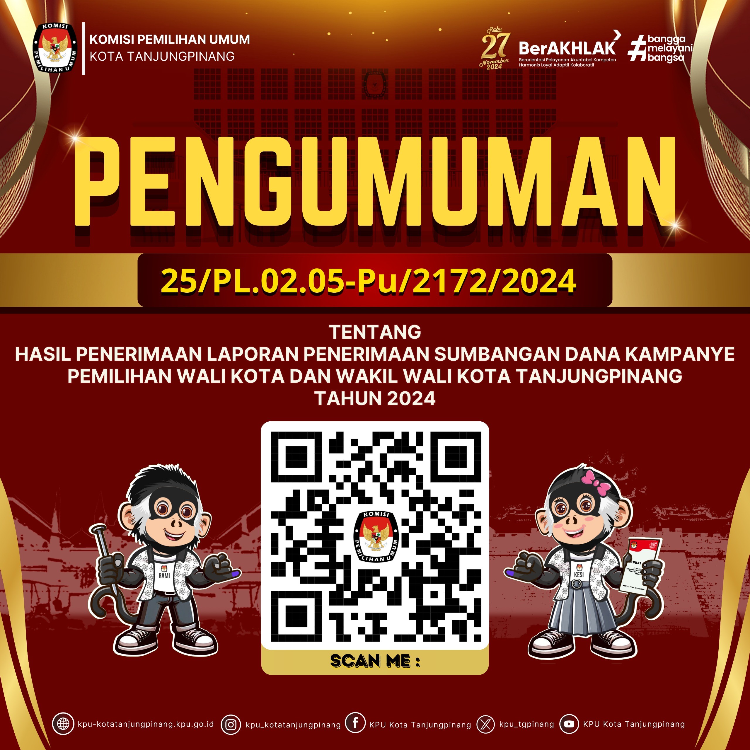 Pengumuman selengkapnya tentang rekapitulasi penghitungan perolehan suara silahkan scan barcode yang tertera pada gambar.