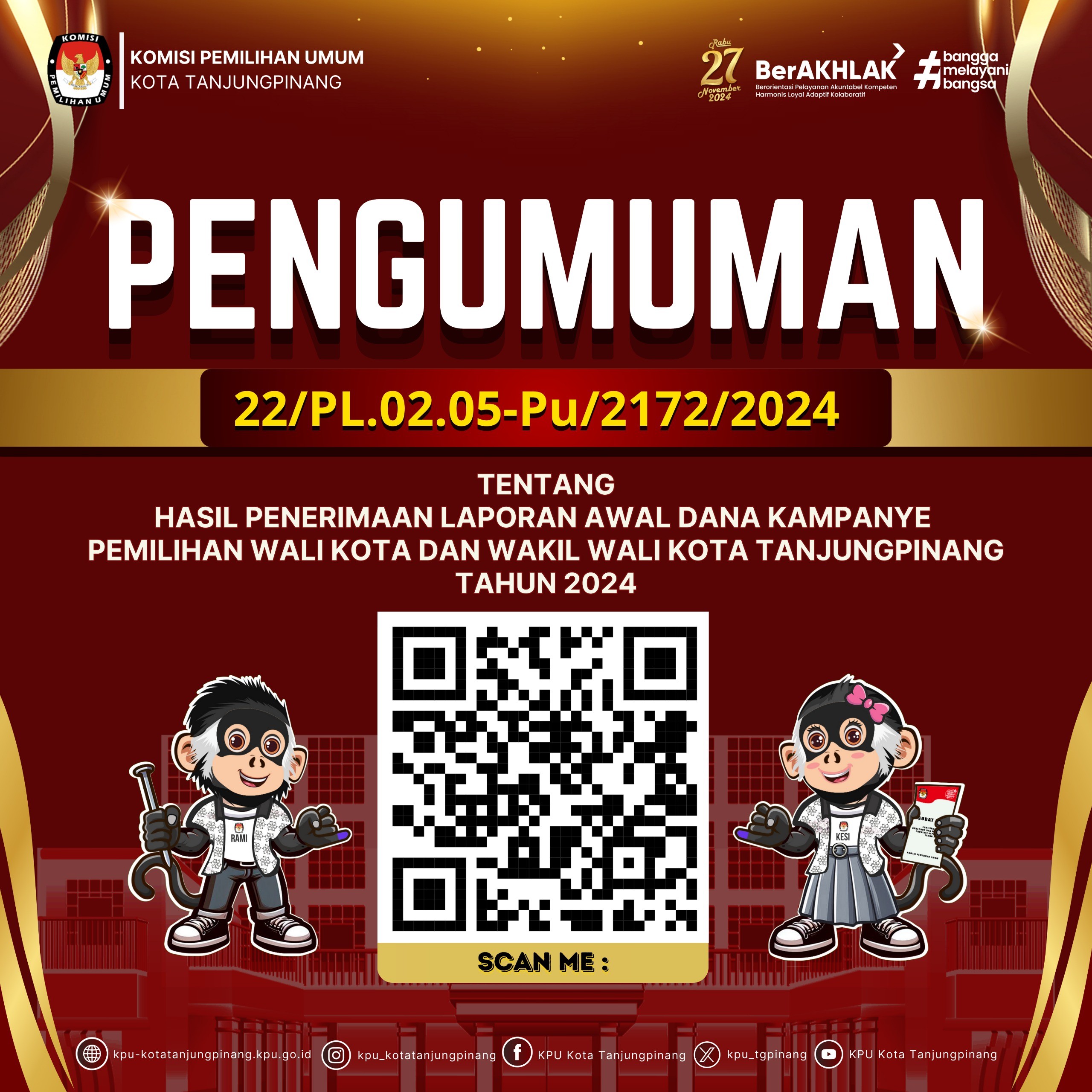 Komisi Pemilihan Umum Kota Tanjungpinang telah melaksanakan Rapat Pleno Terbuka Pengundian dan Penetapan Nomor Urut Pasangan Calon Wali Kota dan Wakil Wali Kota Tanjungpinang pada Pemilihan Serentak Tahun 2024 pada hari Senin, 23 September 2024.