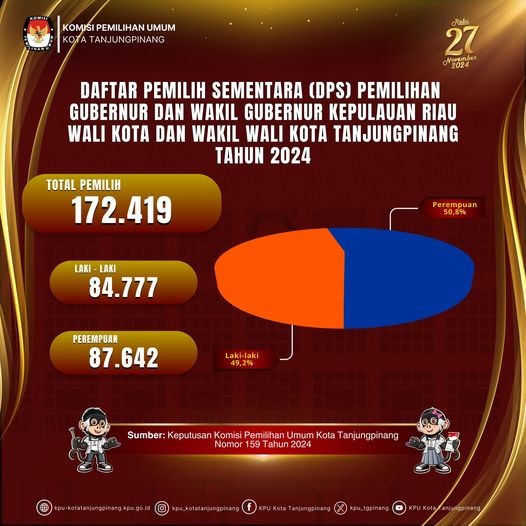 KPU Kota Tanjungpinang telah melaksanakan rapat pleno terbuka penetapan perolehan kursi partai politik dan calon terpilih Anggota DPRD Kota Tanjungpinang hasil Pemilu tahun 2024 pada hari Jum'at, 14 Juni 2024 dengan hasil sebagai berikut: