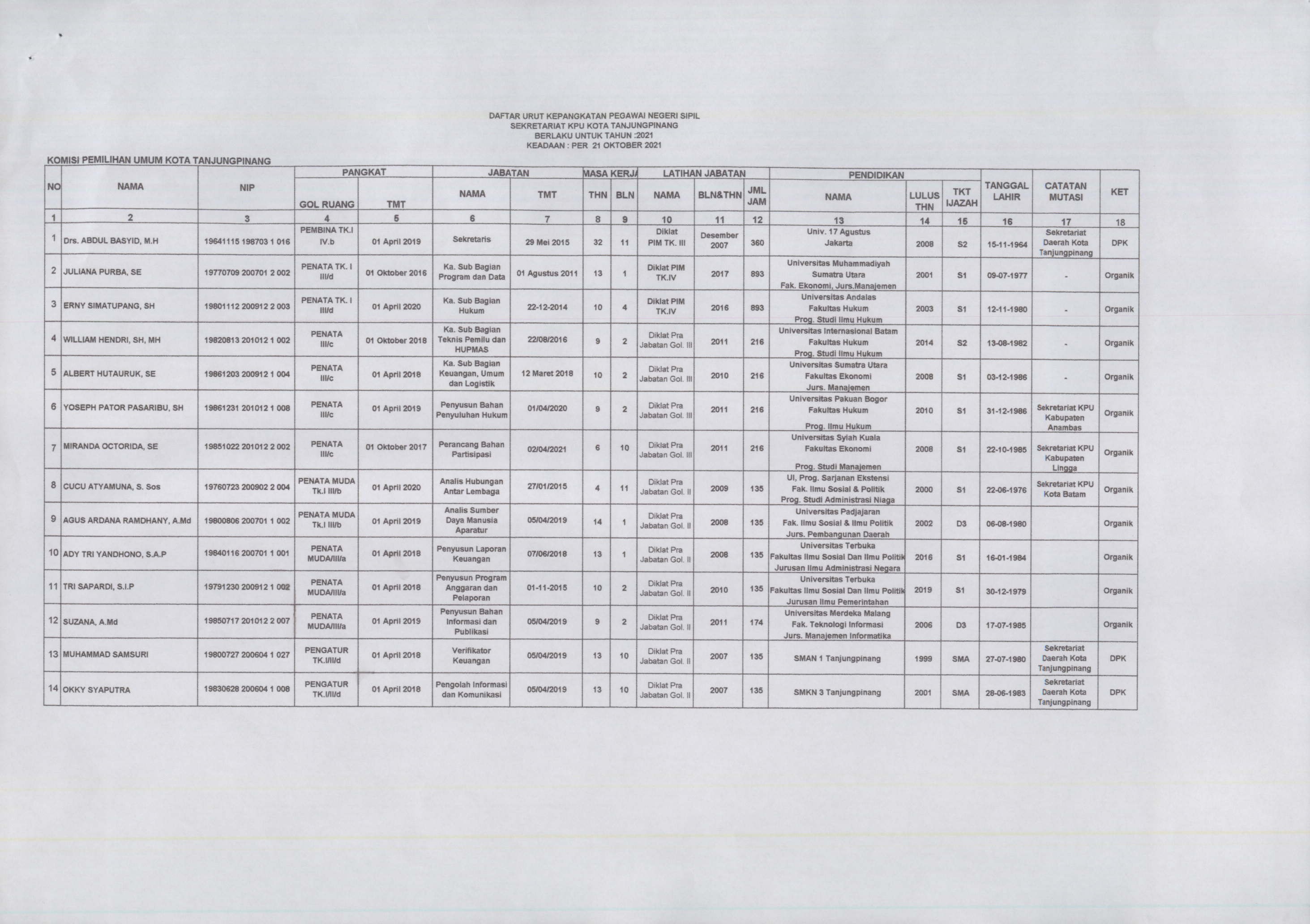 Struktur Organisasi Anggota KPU Kota Tanjungpinang